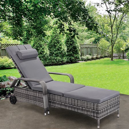 lounge chair rattan chaise patio recliner wheels.