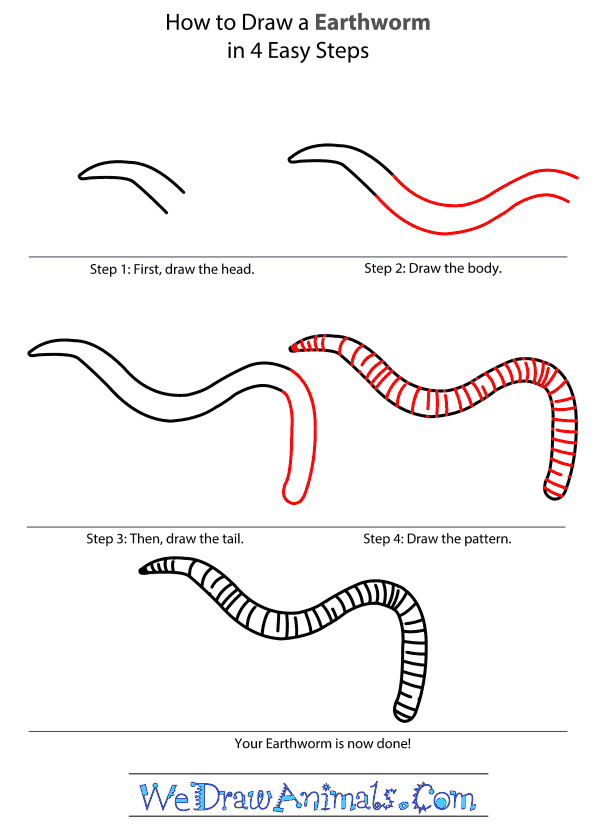How To Draw An Earthworm Printable Step By Step Drawing Sheet